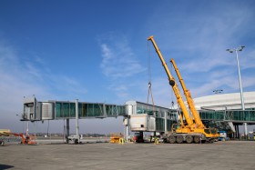 21.02. Na stání č. 14 na pražském letišti Václava Havla byl dnes odpoledne ukotven třetí nástupní most. Stání by mělo být uvedeno do provozu na konci března 2015.