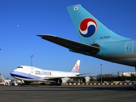 Two biggest aircraft, operated regulary to Prague: B747-400 (China Airlines) and A330 (Korean Air)